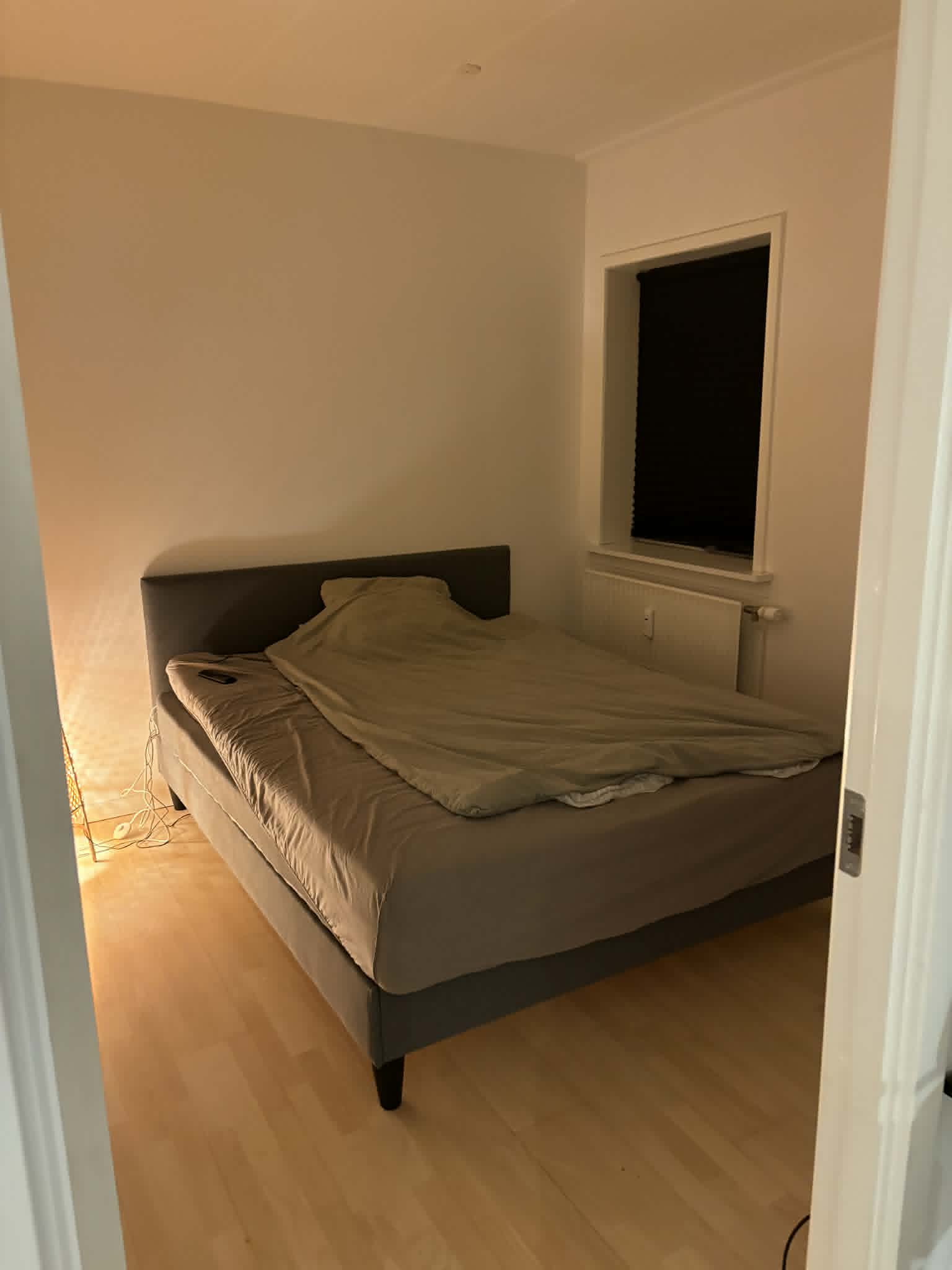 Soveværelset er hyggeligt og rummeligt med plads til både seng og opbevaring.